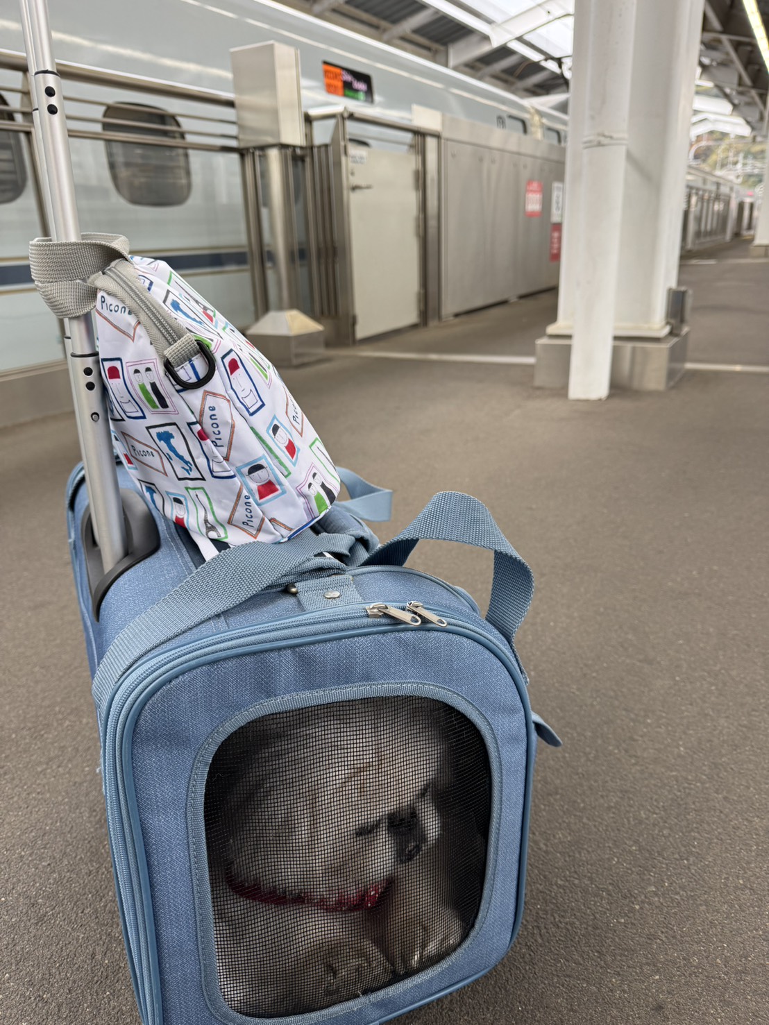 新幹線移動では、キャリーケースの選定や乗車時間帯の調整、車内での温度管理や振動への配慮など、愛犬の体調を最優先に考えた運搬が求められます。今回も移動中はこまめに様子を確認し、安心できる環境づくりを徹底しました。